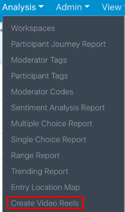 To create a video reel, access the Analysis dropdown in the top navigation.
