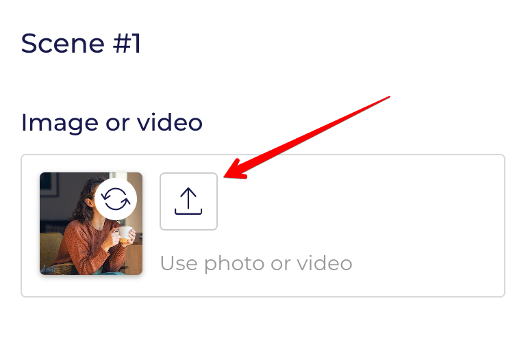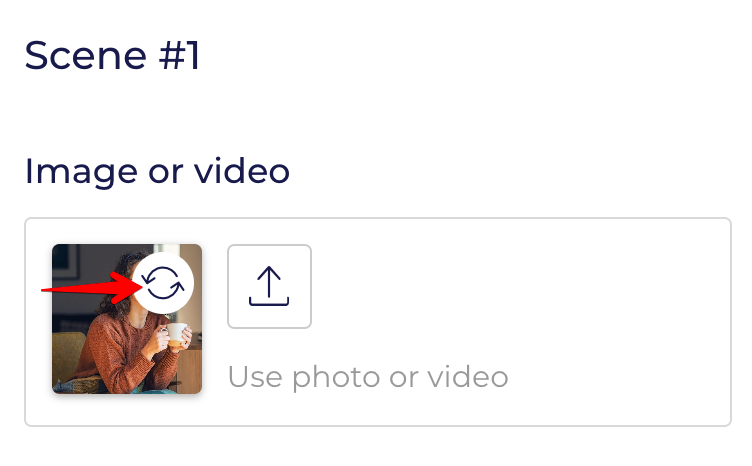 Once you enter a template, you will have many options to customize your reel.  By default, you will be on the first Scene (which looks like a PowerPoint slide), and reels are made up of a series of Scenes. If you click the graphic on the left side of the Scene, you can change it to a picture/video that you brought in from your EthOS project.