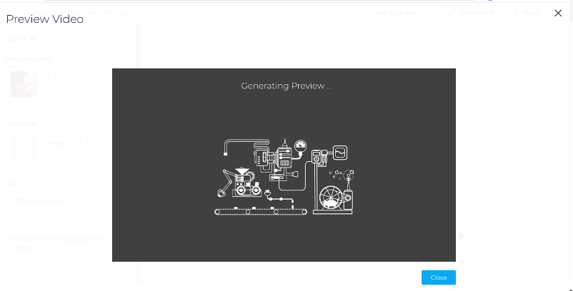 At the top of the page, we have some additional options: Adding voice-over, Video Style, and Music.