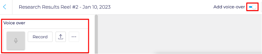 If you want to use voice-over, you will toggle the box up top to on, as shown below, and then you will see the Record area for you to record.