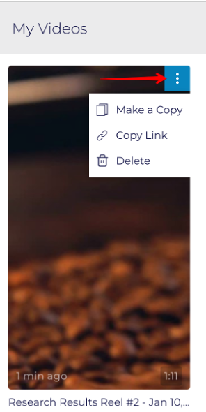 If you decide you want to make additional changes, you will NOT be able to do so with the existing video you made. You would click the “Make a Copy” option as mentioned above and edit the copy.
